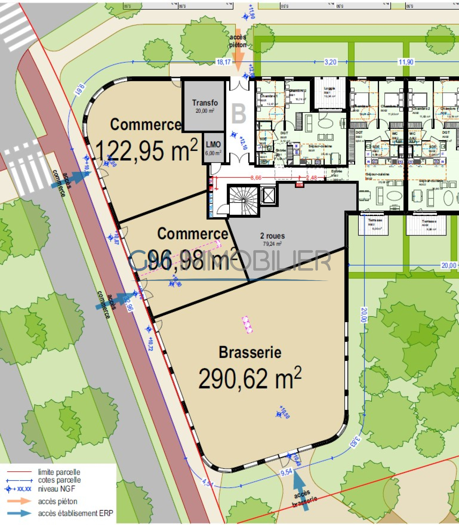 Prix : 97m² 230.000€ HT --- 122m² 290 000 HT -- 290m² 630 000€ HT + 5%HT de frais d'agence -
